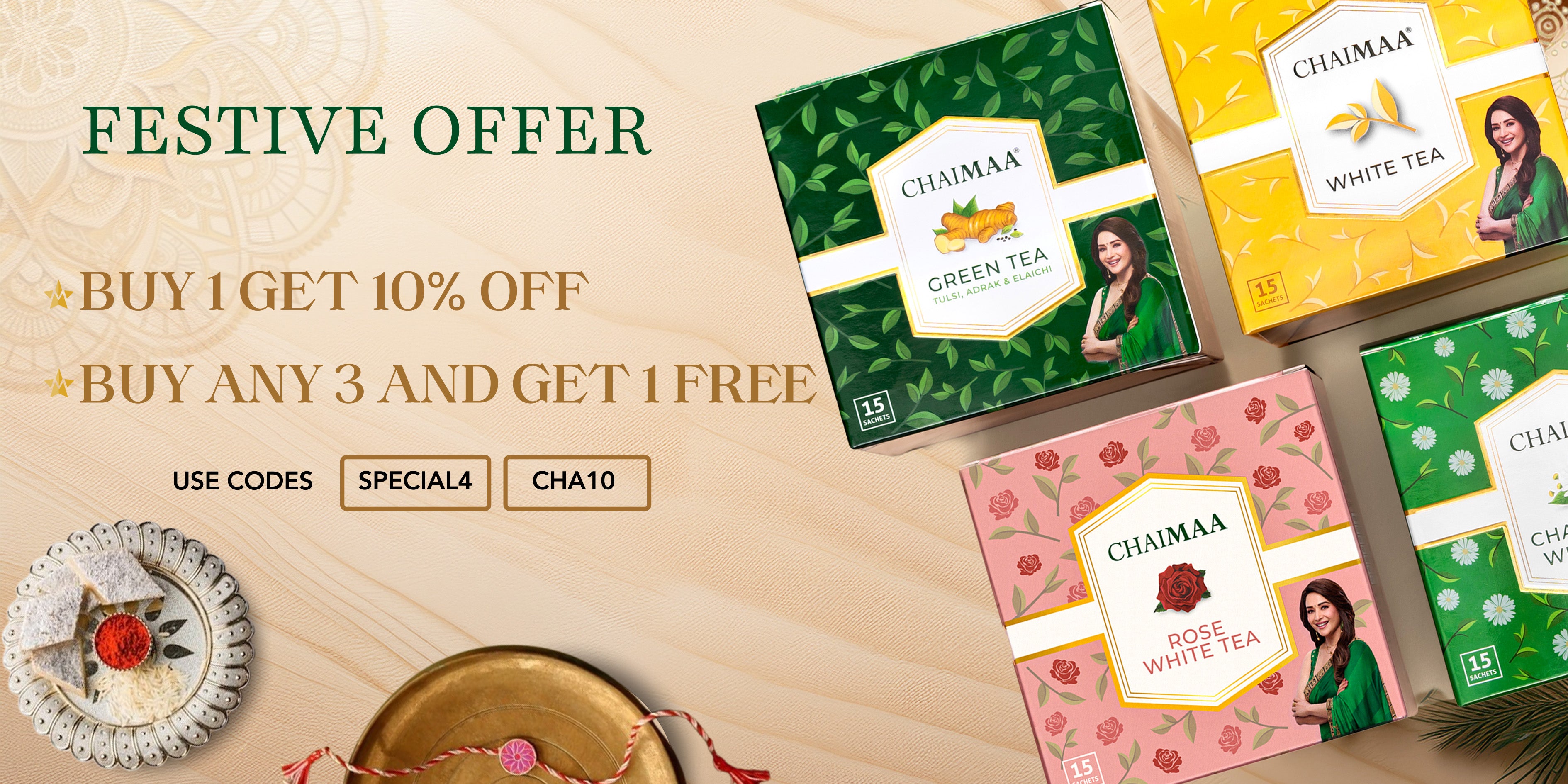 Vendor:A Curated Collection of Wellness in Every SipSavor the complete Chaimaa experience with our exclusive bundle featuring all four premium blends – Green Tea (Tulsi, Adrak & Elaichi), White Tea, Rose White Tea, and Chamomile White Tea. Perfect for gifting or personal indulgence, this bundle brings together calm, immunity, beauty, and balance in one elegant set.